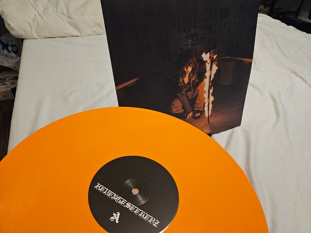 From one of the newer releases from last year, I blogged about this a while ago, but this killer album is Revengeseekerz by Jane Remover. A great rage album and puts them on the map for so many music fans. Jane really found a way to make this sound so crazy while tiptoeing on the fence of chaos. Check out my overview of this album since I’ve talked about it, but yeah I love this neon orange color pressing. I was looking for a colored pressing of this one and was considering of getting a copy at Urban Outfitters. They got some pressings I like and I bought some, don’t get me wrong, just sometimes they can be expensive, so I got this one at Turntable Lab. Great online storefront. And I love this color better!